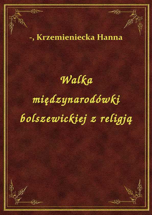 Dzieło Hanny Krzemienieckiej. Hanna Krzemieniecka, to polska pisarka i tłumaczka, działaczka narodowa. Była autorką poczytnych na przełomie XIX i XX wieku powieści, obecnie jest pisarką zupełnie zapomnianą. O jej popularności mogły świadczyć plany nazwania dużej ulicy w Warszawie (niezrealizowane przedłużenie ul. Powązkowskiej wg. planu miasta z 1935 r.)